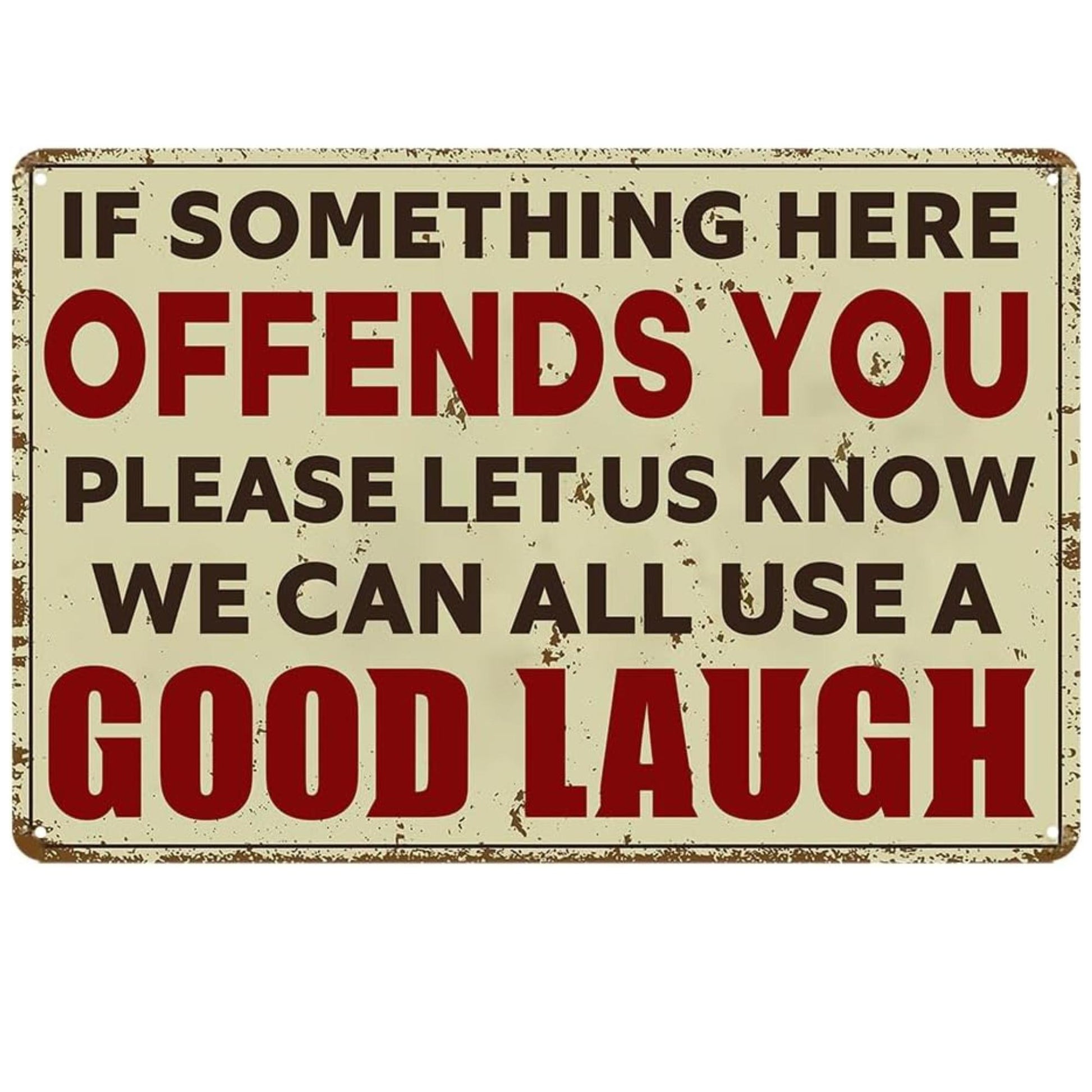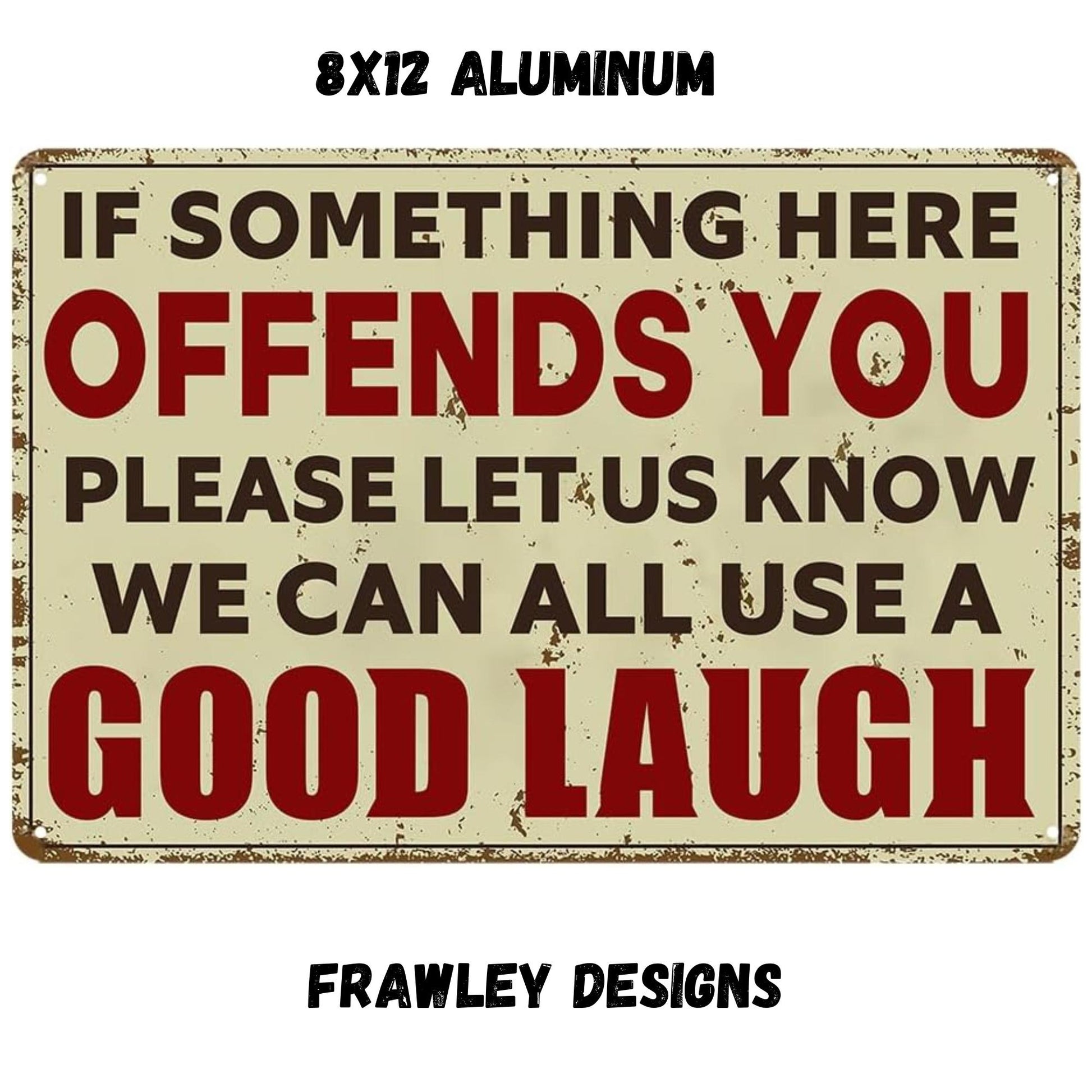 IF SOMETHING OFFENDS YOU PLEASE LET US ALL KNOW WE CAN ALL USE A GOOD LAUGH 8X12 ALUMINUM SIGN
