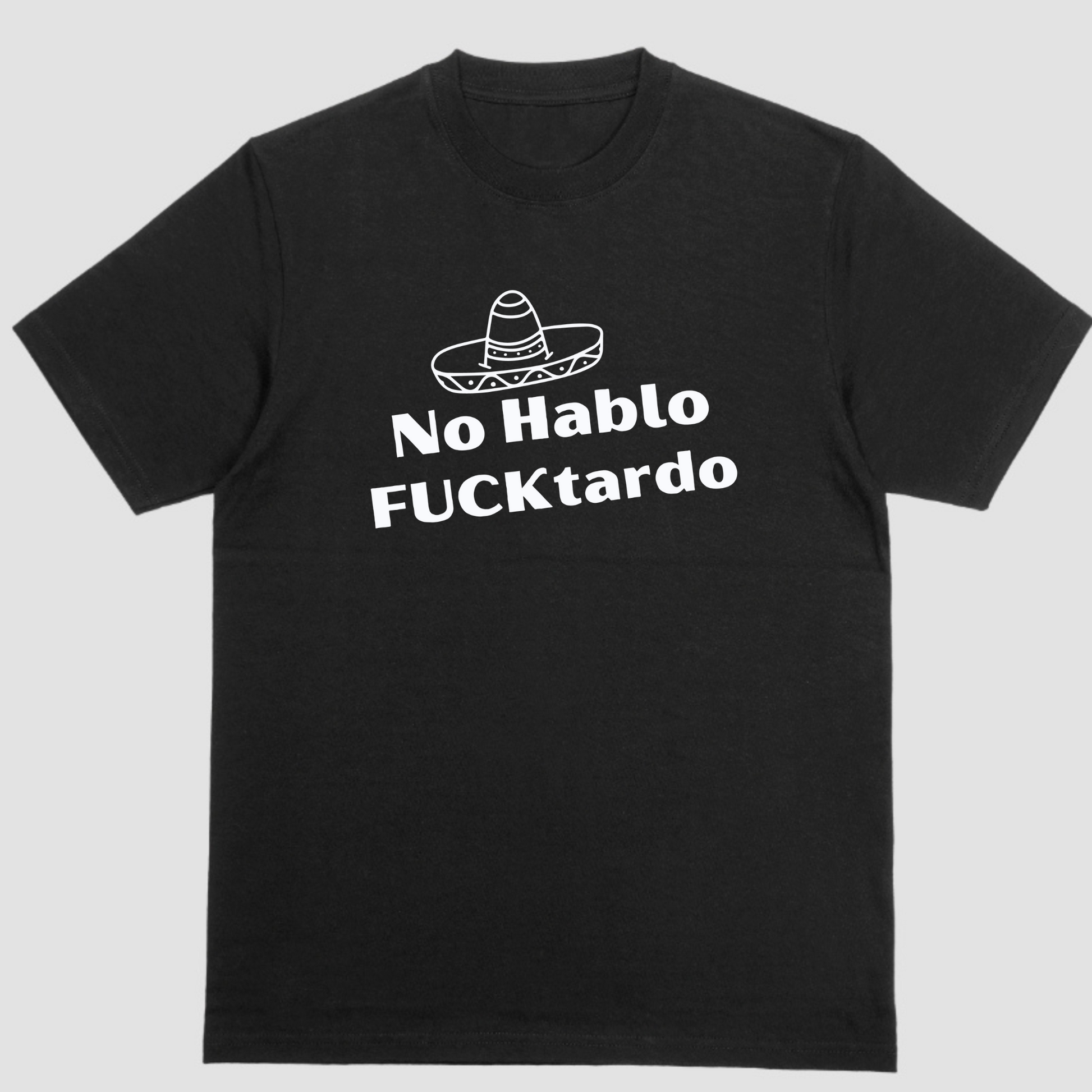 Introducing our exclusive "No Hablo FUCKtardo" T-shirt – a vibrant and stylish addition to your wardrobe that captures the essence of living life to the fullest! This eye-catching tee not only brings a pop of color to your outfit but also celebrates the joy and passion of the Spanish language.
