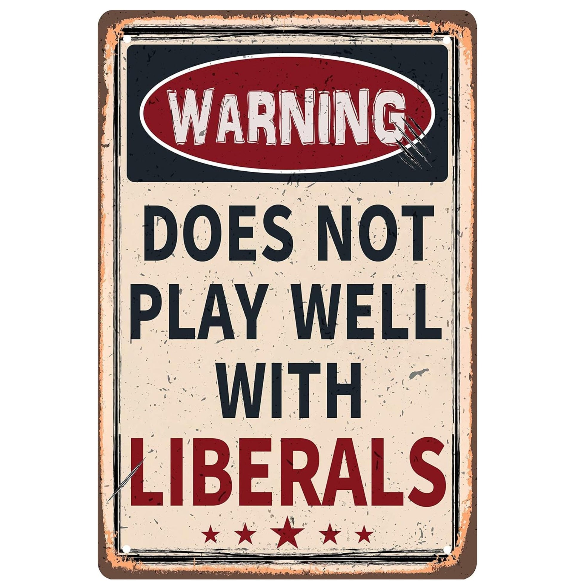 Warning: Does Not Play Well With Liberals 8x12 aluminum sign